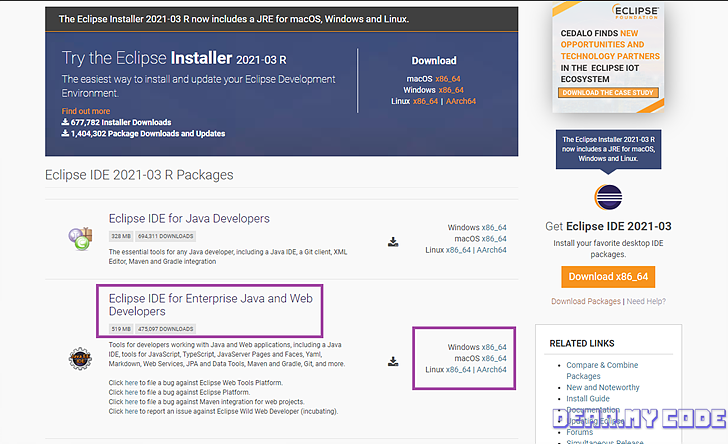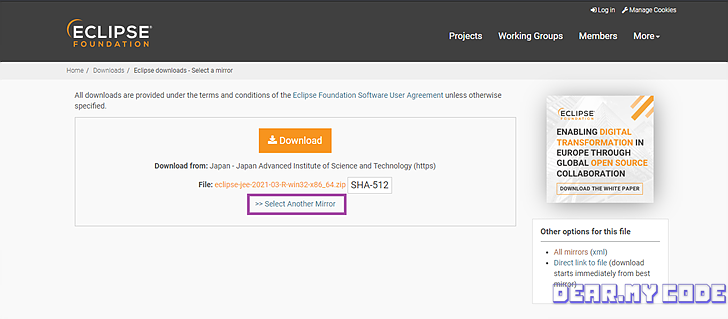 위 링크롤 통해 eclipse 다운로드 사이트로 이동한다.