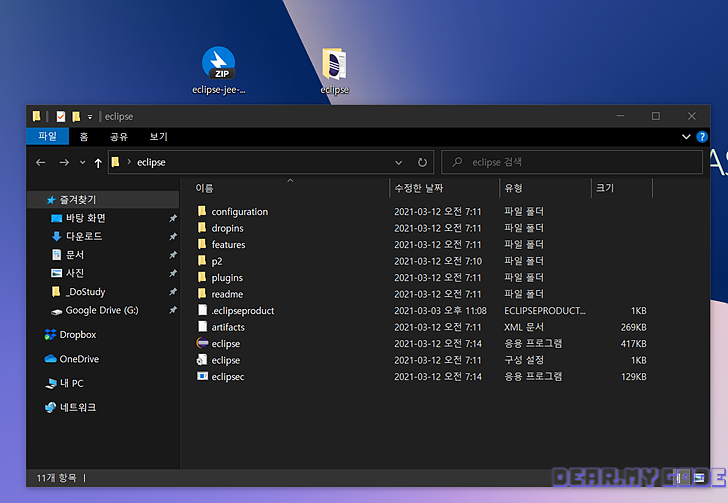 최근엔 이클립스도 exe 파일로 컴퓨터에 직접 설치하는 방법으로도 쓸 수 있는데,