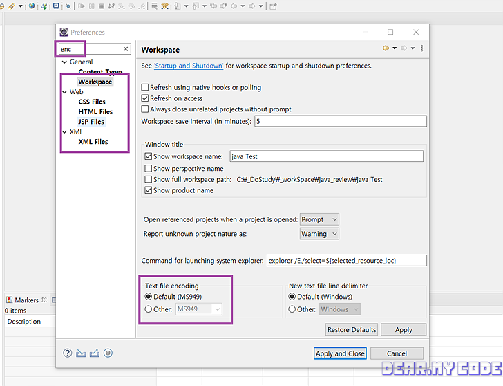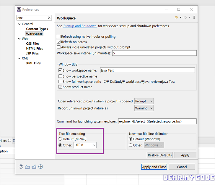 바꾸는 김에 workspace, css files, html files, jsp files, xml files도 싹 다 utf-8으로 변경하고