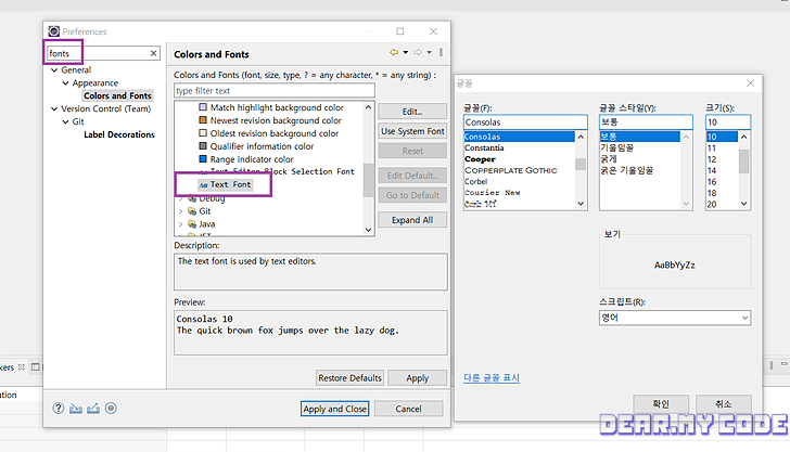 여러 폰트 관련 부분들을 바꿀 수 있지만, 코딩하면서 보이는 작업 영역 부분의 폰트 스타일을 바꾸고 싶다면