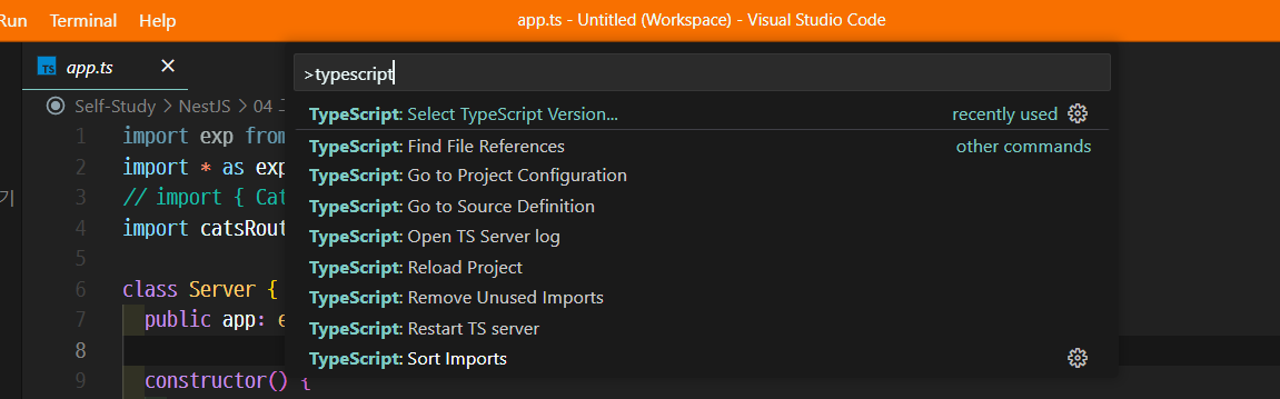 vscode에서 현재 사용 중인 타입 스크립트 버전 정보를 확인하고 그 버전을 낮출 수 있다.